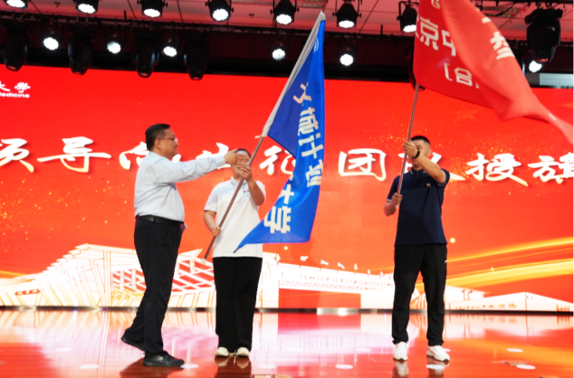 在庄重的出征仪式上,校党委书记王瑶琪,党委常委、副校长王停为师生授旗壮行。全体成员庄严宣誓,誓言铿锵,青春昂扬。