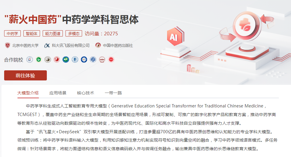 “薪火中国药”智思体1.0版的成功发布标志着国内首个中药学科生成式AI教育专用大模型上线运行并投入使用。