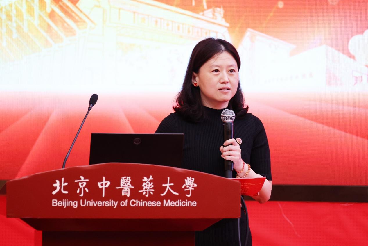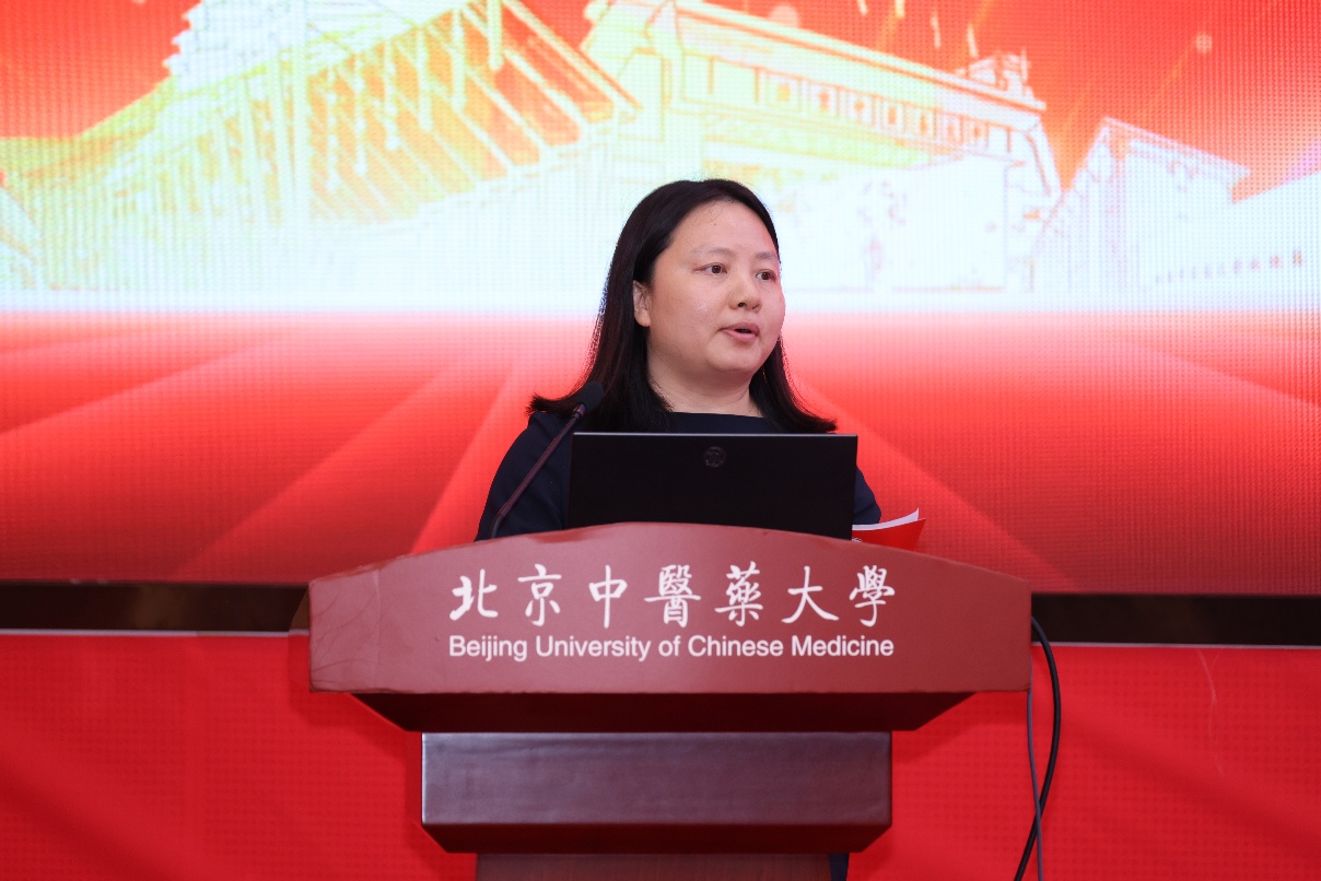 中药学院董世芬作题为《忠诚执着守初心,无私奉献担使命:张硕峰同志育人事迹报告》报告