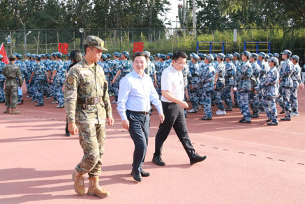 9月18日,校长唐志书赴良乡校区东院运动场看望军训团队和军训学员。学工部部长赵建磊,副部长艾华、赵小虎、徐巍,团委书记宋珊珊陪同看望慰问。