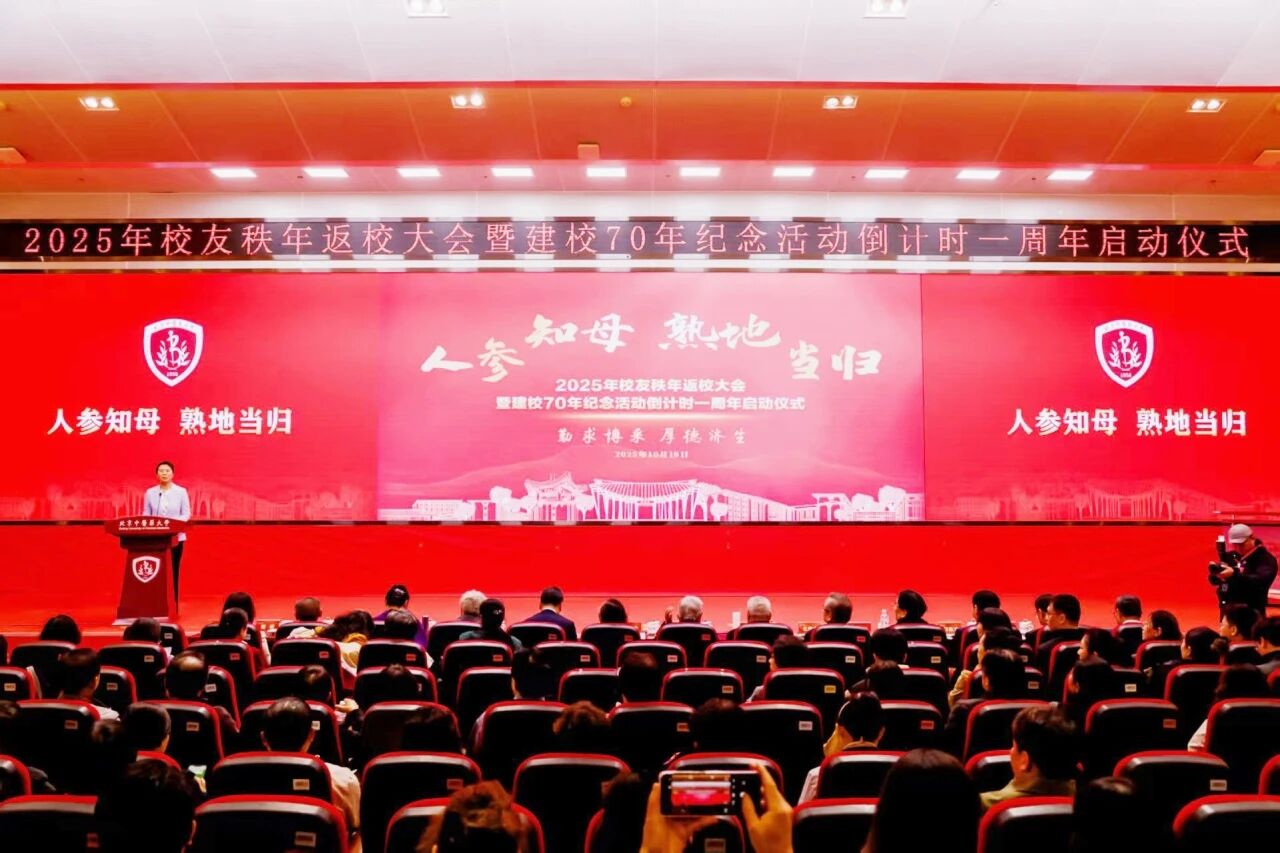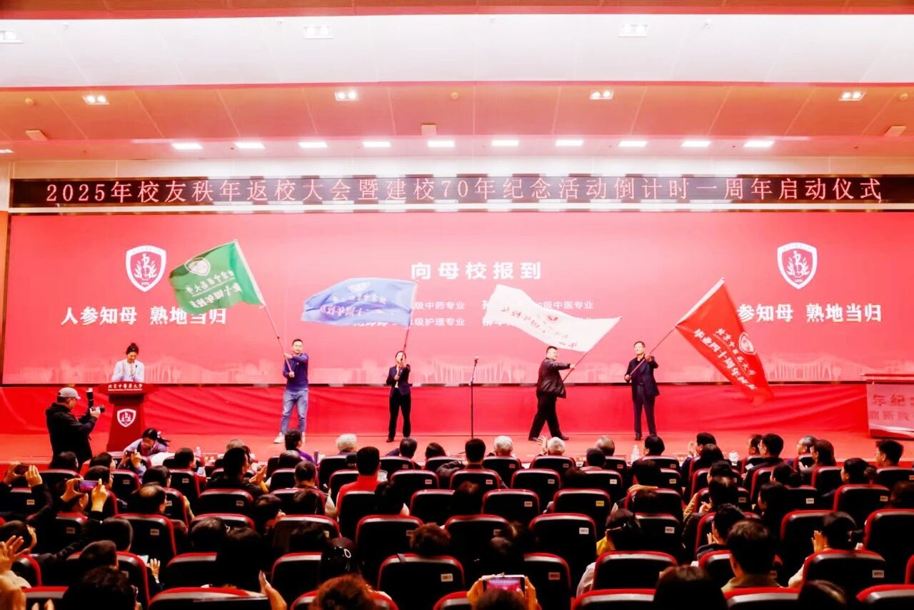 秋高气爽,情满杏林。10月18日,万象城allwincity官网在良乡校区举办2025年校友秩年返校大会暨建校70年纪念活动倒计时一周年启动仪式。校党委书记王瑶琪,党委副书记、校长唐志书,党委常委、副校长闫振凡,校长助理刘永琦,相关职能部门、各学院负责人,秩年40年、30年、20年、10年返校校友及师生代表近600人参加大会。大会在万象城allwincity官网官方视频号和抖音号进行同步线上直播。大会由副校长丁霞主持。
