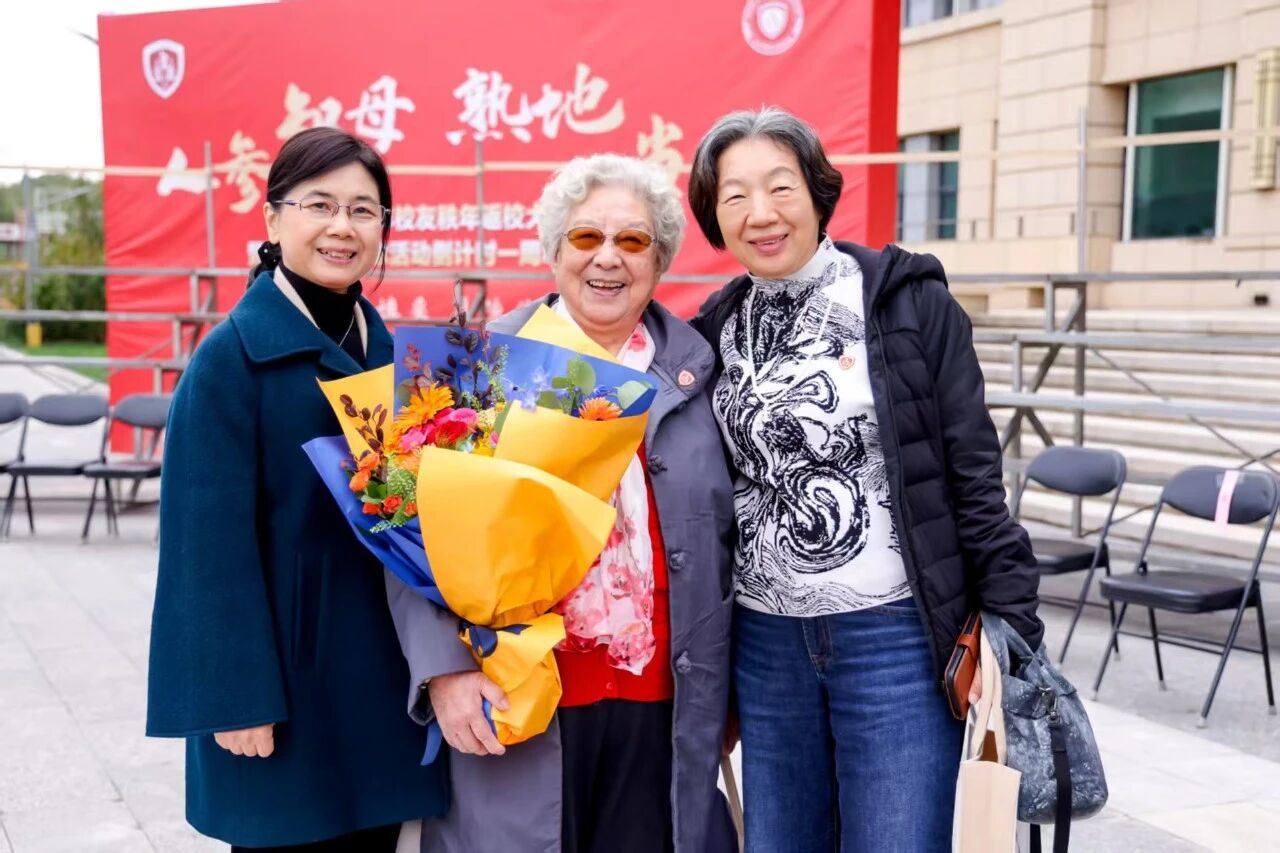 秩年校友代表为教师代表献上鲜花,表达最诚挚的敬意与感谢。