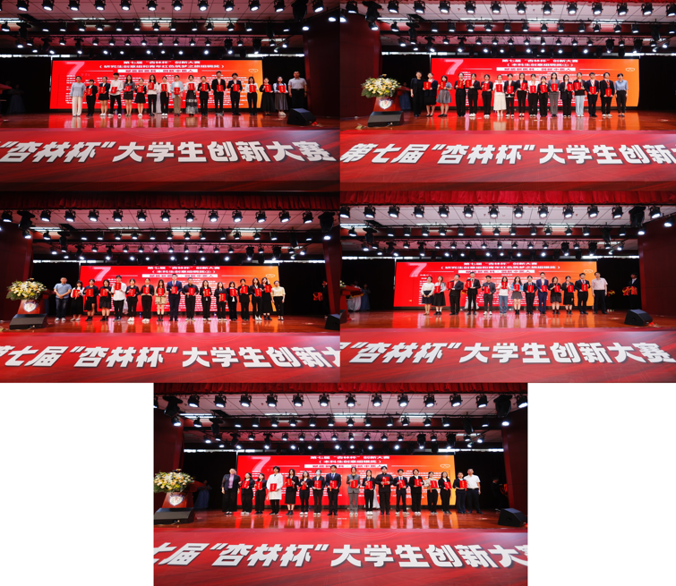 招生与就业处副处长申堃宣布本届大赛获奖名单,与会校领导、相关部门领导为获奖团队、指导教师和学院颁奖。
