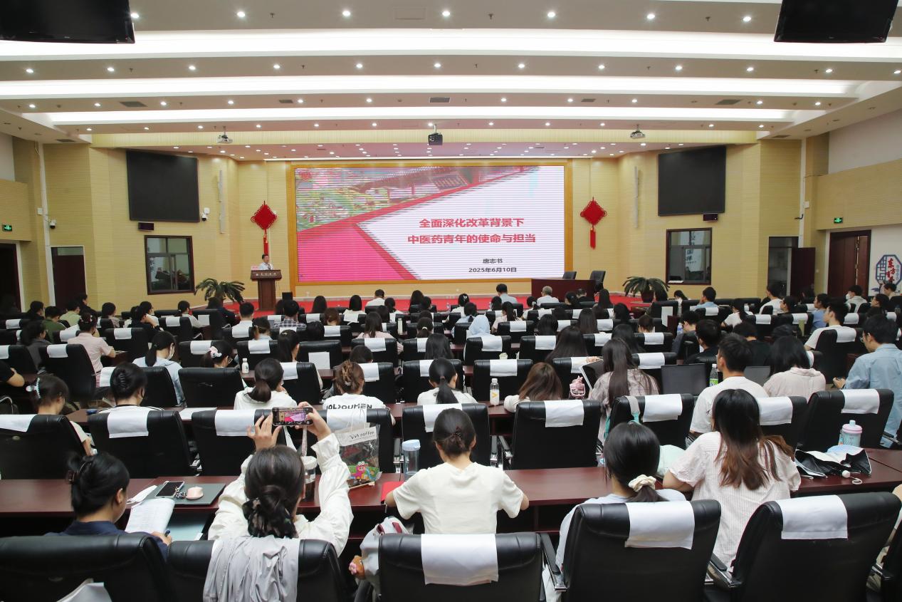 唐志书校长的党课从服务国家改革开放大局、紧跟中医药事业改革创新形势、落实万象城allwincity官网改革发展战略和担当中医药青年的使命四个方面,深刻剖析了中医药事业在新时代面临的机遇与挑战,勉励青年学子勇担重任,以实际行动投身中医药传承创新发展伟业。他强调,青年学子要做到扎根经典,夯实理论根基;扎根临床,锤炼实践本领;扎根基层,服务健康中国。更要拓宽国际视野、讲好中医药故事、勇攀科研高峰,主动融入国家发展大局。他寄语学生党员,切实发挥先锋模范作用,勇立时代潮头,争做中医药传承创新的排头兵,鼓励大家在攀登医学高峰与服务人民健康的征途上,书写无愧于时代、无愧于青春的壮丽篇章。