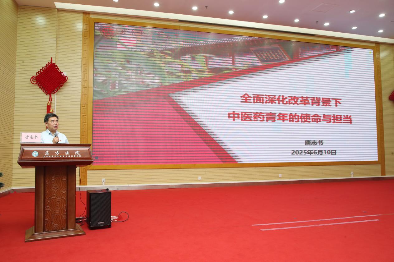 唐校长联系指导东方医院学生一党支部,关心支部建设和学生的思政教育、学业就业,此次党课学生党员们深受鼓舞启迪,纷纷表示:“校长的党课让我们深刻认识到,中医药传承不仅是技艺的延续,更是文化自信的彰显。作为青年党员和中医药学子,我们既要当好‘守门人’,守护中医药核心价值;也要争做‘探路者’,以改革创新推动中医药现代化。”