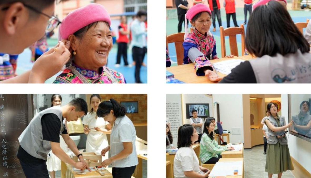 在查姆湖社区和中彝医体验馆,实践团成员们运用所学知识为当地居民提供健康服务和宣讲。