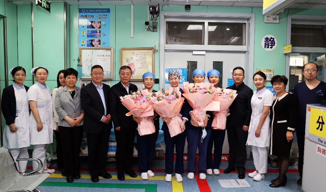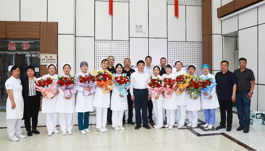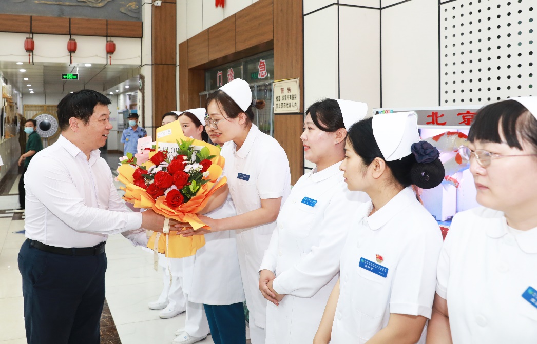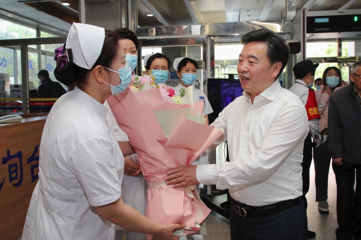 在护士节来临前夕,学校党委组织安排全体在家校领导慰问学校护理工作同仁和师生。5月11日,校长唐志书一行到东方医院看望慰问一线护士,代表学校向他们致以节日的问候和崇高的敬意。