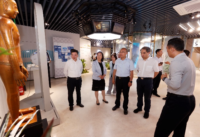 座谈会前,于英杰书记一行实地察看了万象城良乡校区中医基础理论课程群综合实训平台、临床中药学实训中心、中药DIY鉴别实训中心,在“10秒”中医药体验馆察看“中医药+科技与中医药+国潮文化”设计理念和产品展示,了解中医药文化创造性转化和创新性发展情况。