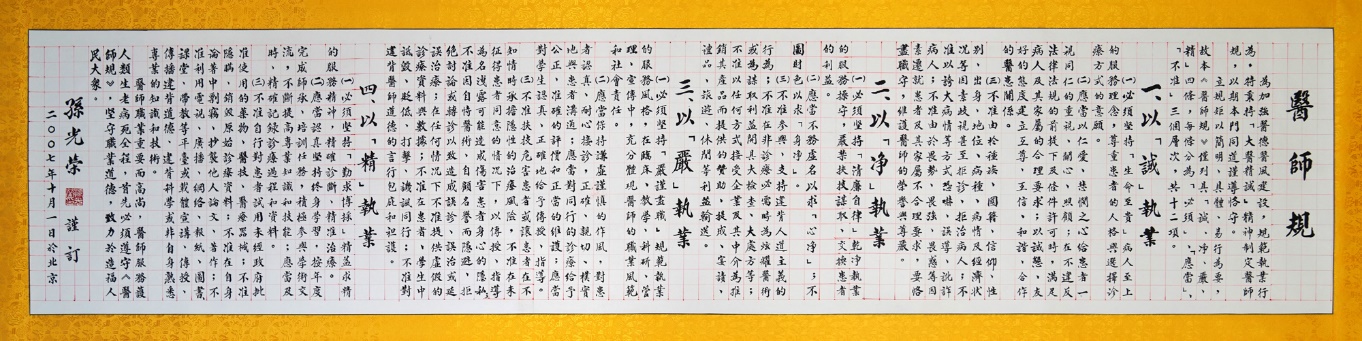 立规矩以简明、具体、易行为要,故本《医师规》仅列具“诚、净、严、精”四条,每条分为“必须、应当、不准”三个层次,共十二项。
