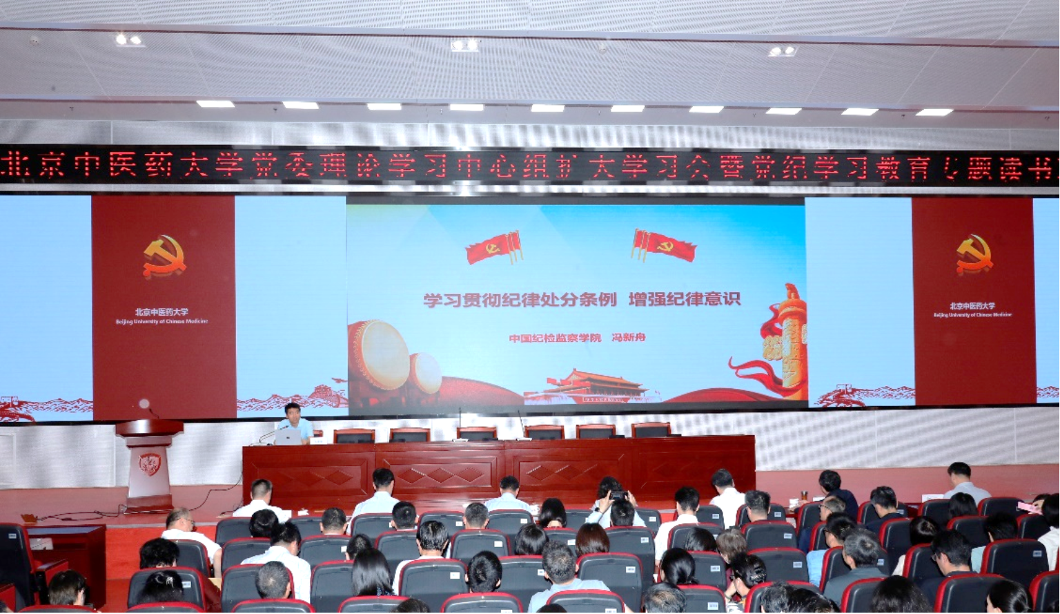 党委理论学习中心组(扩大)党纪学习教育专题学习会邀请中国纪检监察学院冯新舟副教授以《学习贯彻纪律处分条例 增强纪律意识》为题作辅导报告。冯新舟副教授从新时代党的纪律建设理念、《条例》起草修订的历史、《条例》的主要内容及适用、学习贯彻条例的几点认识四个方面,结合生动真实的案例,对《中国共产党纪律处分条例》进行深刻解读和阐释。他强调,纪律是党的生命线,党的纪律是铁的纪律、自觉的纪律,为规范全党言行提供了根本遵循。报告全面系统、论述精辟、深刻生动,对于进一步强化广大党员干部纪律意识、加强自我约束、提高免疫能力,始终做到忠诚干净担当,具有重要启示和警示意义。