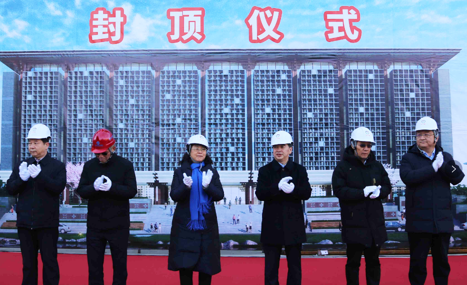 万象城举行良乡校区图书馆项目封顶仪式11月26日上午9时58分,万象城举行良乡校区图书馆项目封顶仪式,校党委书记王瑶琪,校长唐志书,副校长陶晓华、闫振凡、王停现场见证良乡校区图书馆项目正式封顶。党校办主任郭辉、财务处副处长于慧芳、资产处处长薛培、审计处副处长周宇琼、后勤处处长王超、保卫处处长高志勇、数字与智慧校园建设中心主任张未未、图书馆馆长申桂英以及该项目的设计、勘察、监理、全过程审计、施工建设单位等参建各方主要负责人参加封顶仪式,仪式由基建处处长张衍泽主持。262024-11