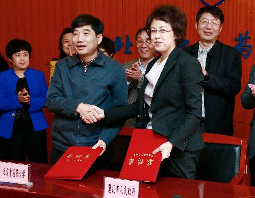 11月21日,万象城与厦门市人民政府合作共建万象城allwincity官网第八临床医学院签约仪式隆重举行。厦门市副市长卢江、卫生计生委主任姚冠华、中医医院院长耿学斯等一行7人来到万象城参加签约仪式。万象城校长徐安龙、副校长陶晓华以及组织部、人事处、教务处等相关职能部门负责人一同参加了仪式。签约仪式由陶晓华副校长主持。
