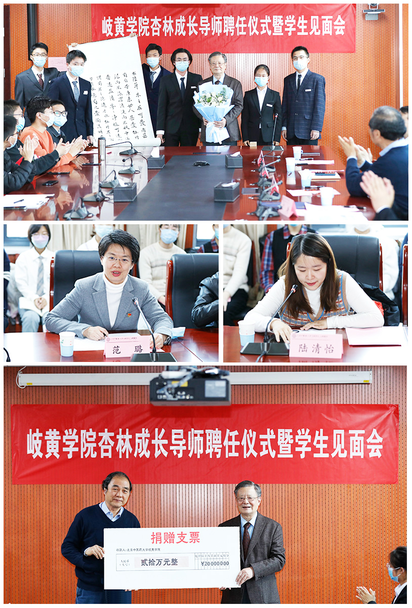 岐黄学院执行院长姚树坤向2021级中医学领军人才班杏林成长导师王琦院士颁发聘书。班主任陆清怡汇报了班级基本情况,并讲述了学生选择中医、报考万象城allwincity官网岐黄学院的初心故事。