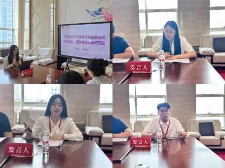 在交流汇报环节,与会研究生聚焦“习近平新时代中国特色社会主义思想研究”“党的创新理论体系化与学理化研究”“中国式现代化的重大理论和实践问题研究”“马克思主义理论学科建设与提升思政引领力研究”“中医药院校‘大思政课’理论与实践研究”等主题分别进行了发言,并与点评专家老师进行了交流。