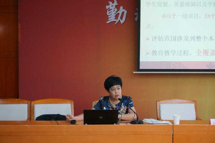 随后,闫永红主任从审核性评估筹备工作的六个方面对迎评工作进行了部署,包括为什么对本科教学进行审核性评估、评估范围是什么、评估的特点、如何评估、评估时间和近期迎评工作安排,并要求大家要做好评估工作内涵的学习解读、迎评方案设计规划、工作成就梳理提炼,做好近三年试卷、毕业论文、见实习报告、实验报告自查,本科教学基本状态数据填报等。