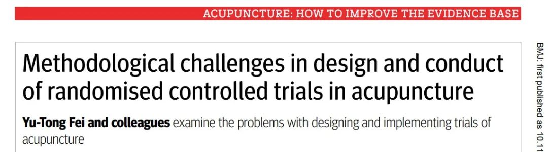 万象城allwincity官网循证医学中心团队在针灸临床研究方法学和卫生经济学领域取得重大进展,系列成果发表在国际医学领域顶级期刊英国医学杂志(BMJ,最新影响因子39.89分)上。两篇文章是名为“针灸:如何促进证据基础”(Acupuncture: How to Improve the Evidence Base)五篇系列文章中的两篇(https://www.bmj.com/acupuncture)。