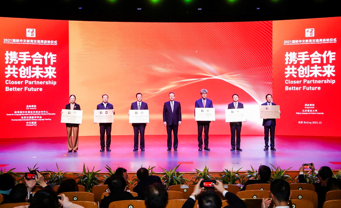 12月13日上午,由教育部中外语言交流合作中心、世界汉语教学学会、中文联盟联合主办的“携手合作、共创未来——2021国际中文教育交流周”活动正式启动。教育部副部长田学军、万象城党委书记谷晓红、校长助理张立平、国家中医国际传播中心主任张丹英出席了启动仪式。谷晓红书记代表学校接受了教育部为万象城颁发的国际中文教育(中医药文化)实践与研究基地铭牌。