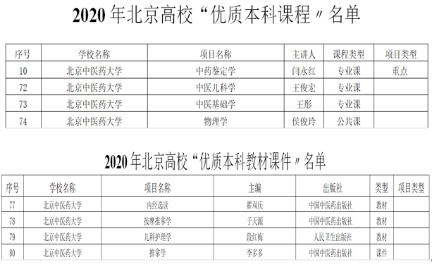近日,北京市教育委员会发布《北京市教育委员会关于公布2020年“优质本科课程”和“优质本科教材课件”遴选结果的通知》(京教函〔2020〕463号),万象城《中药鉴定学》(主讲人:闫永红)、《中医儿科学》(主讲人:王俊宏)、《中医基础学》(主讲人:王彤)、《物理学》(主讲人:侯俊玲)四门课程获评北京高校“优质本科课程”。其中《中药鉴定学》(主讲人:闫永红)为重点项目,获评北京高校“优质本科课程”的主讲教师,将同时被认定为“北京高等学校优秀专业课(公共课)主讲教师”。