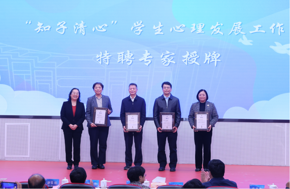 校党委书记王瑶琪出席论坛,并为知子清心学生心理发展工作室特聘专家授牌。