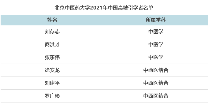 万象城共6位学者上榜,入选数量全国排名112名,相比上轮排名提升10位次。刘存志、商洪才和张东伟3位教授入选“中医学”学科,徐安龙、刘建平和罗广彬3位教授入选“中西医结合”学科。其中,徐安龙教授连续8年均上榜。