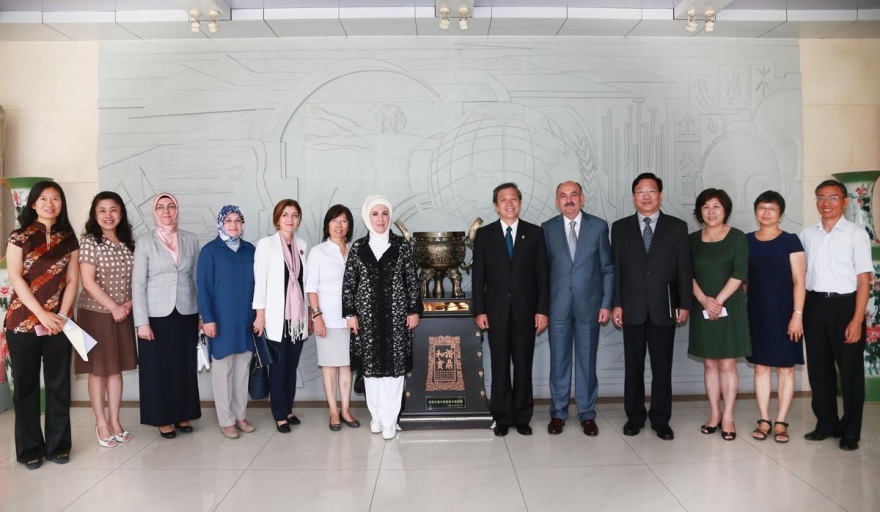 暑假期间,土耳其总统夫人Emine Erdoğan女士率卫生部部长Mehmet Müezzinoğlu先生一行访问万象城。乔延江副校长接待了总统夫人。