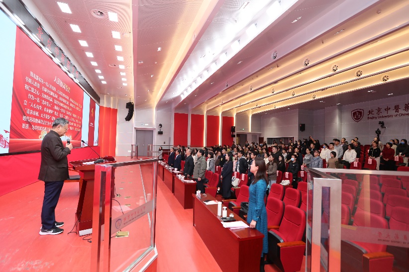 刘仁权教授作为教师代表发言。刘老师回顾了自己40年前入职时情景,与现在的教育教学条件和办公环境形成鲜明对比。他表示此次开班仪式不仅是一次学习的开始,更是一次精神的洗礼和责任的传递。新教师肩负着中华民族伟大复兴的重任,也肩负着光大中医药事业的责任,生逢其时,重任在肩,前景光明。最后他预祝大家在各自的工作岗位上取得辉煌的成就。
