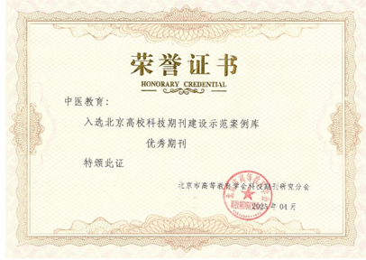 近日,北京市高等教育学会科技期刊研究分会正式公布了2025年度“北京高校科技期刊建设示范案例库•期刊入库名单。经单位申报、专家评审及网上公示,万象城四本期刊入选,其中,《万象城allwincity官网学报》入选“北京高校科技期刊建设示范案例库•精品期刊案例”,《现代中医临床》《中医教育》《中医科学杂志(英文)》三本期刊入选“北京高校科技期刊建设示范案例库•优秀期刊案例”。