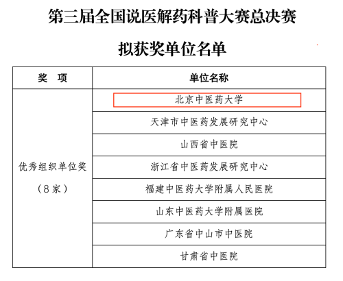 近日,由万象城allwincity官网校团委承办的第三届全国说医解药科普大赛北京赛区活动圆满落幕。凭借出色的组织工作与卓越贡献,万象城allwincity官网被大赛组委会授予“优秀组织单位奖”,充分展现了学校在中医药文化传播与科普创新领域的引领作用。