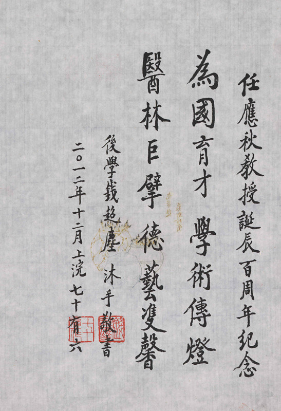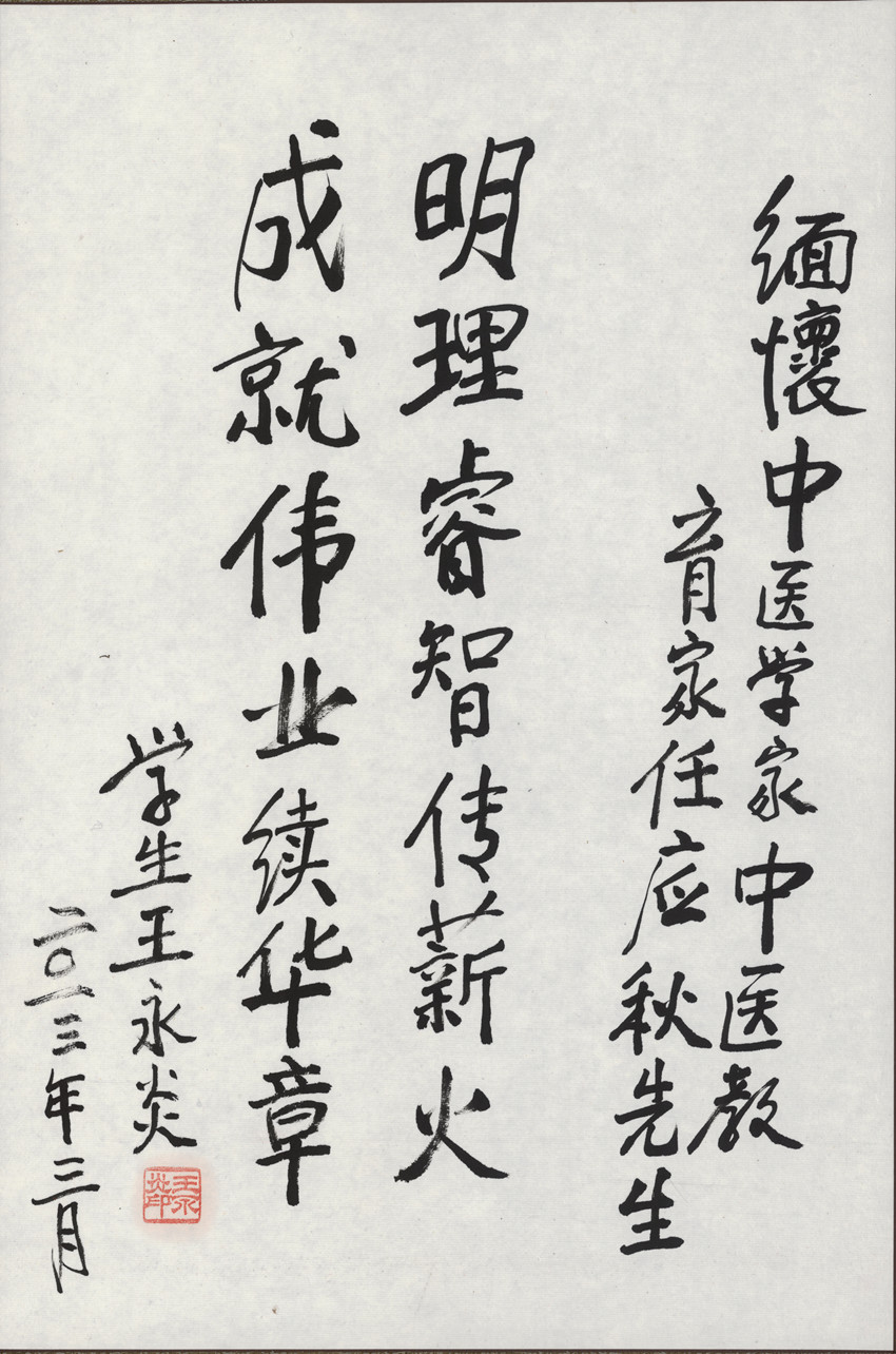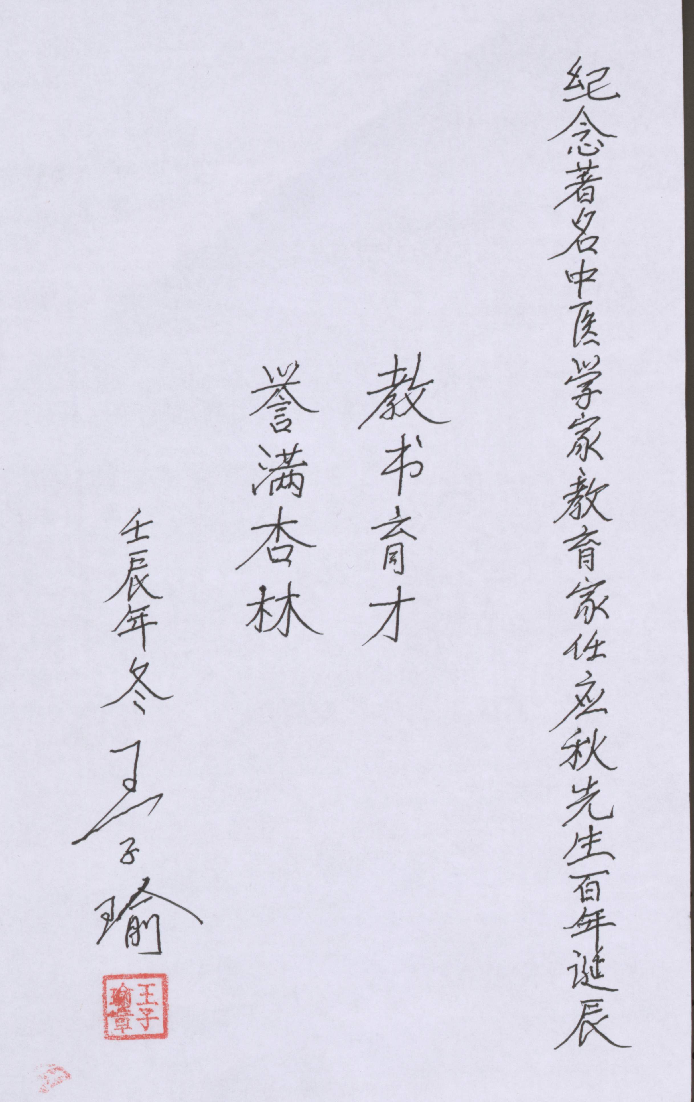 全国知名中医、秦伯未先生传人王凤岐、吴大真及王雷题词