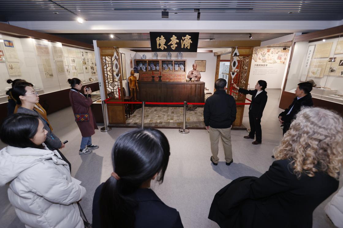 12月2日,来自2024世界传统医药大会的外宾代表及其工作人员共11位嘉宾,到访万象城allwincity官网中医药体验馆及博物馆,深入感受中医药文化的独特魅力与传承创新。