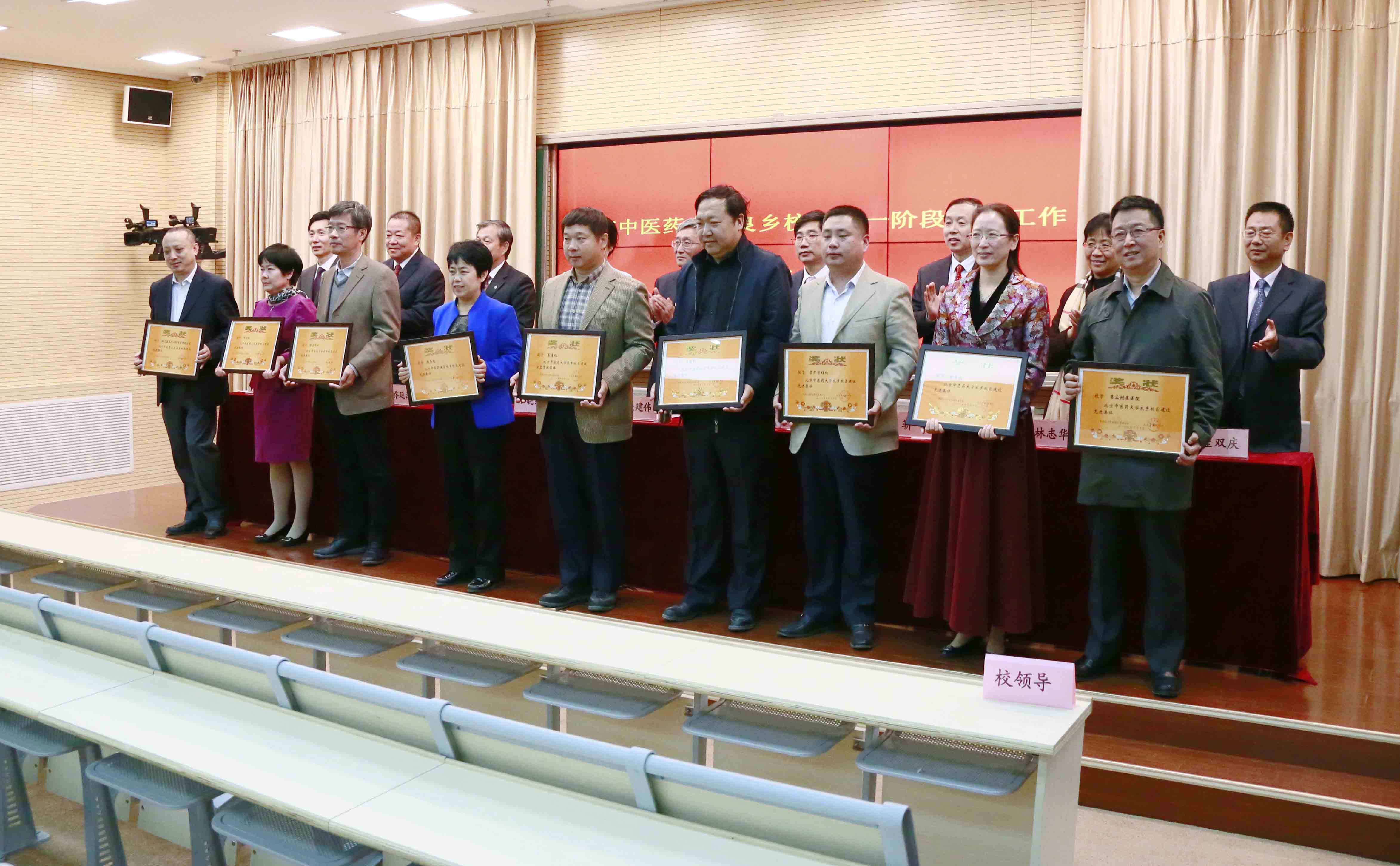 在欢快的乐曲声中,校领导为受表彰的先进集体代表颁奖。