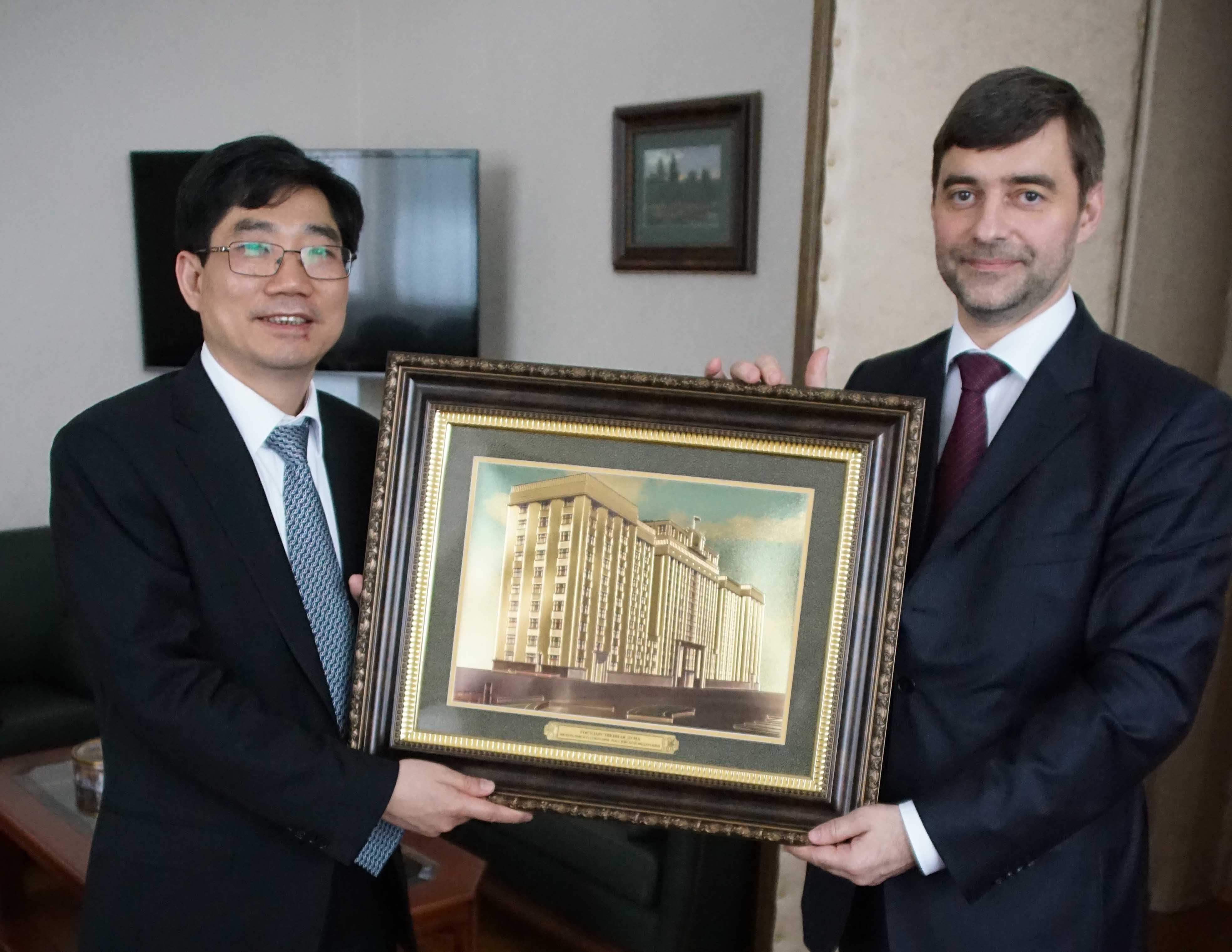 在随后与俄杜马卫生委员会主席谢尔盖·卡拉什尼科夫的交流中,徐校长邀请主席率团访问中国,通过实地考察体验,加深对中医的认识,以便更好在俄建立系统的中医医疗体系,为俄罗斯人民提供优质的中医医疗服务。