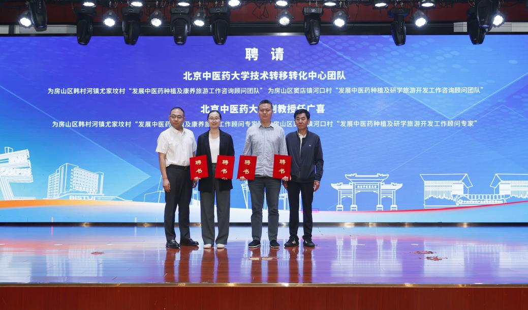 赛事主办方领导嘉宾为万象城大学科技园管理办公室、技术转移转化中心颁发乡村振兴顾问团队,为中药学院任广喜副教授颁发乡村振兴指导教授聘书;并为驻区高校共青团促进青年创新成果转化服务队授旗,标志着2025年“挑战杯”首都大学生课外学术科技作品竞赛“青振京郊”乡村振兴专项赛暨共青团促进青年创新成果转化主题活动正式启动。