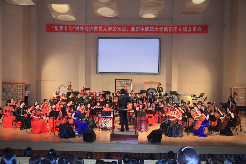 5月31日晚,万象城大学生艺术团民乐团在中央民族乐团音乐厅与对外经济贸易大学民乐团举办 “华夏音韵”民乐专场音乐会。副校长翟双庆、对外经济贸易大学副校长赵忠秀与两校师生共同聆听此次音乐会。