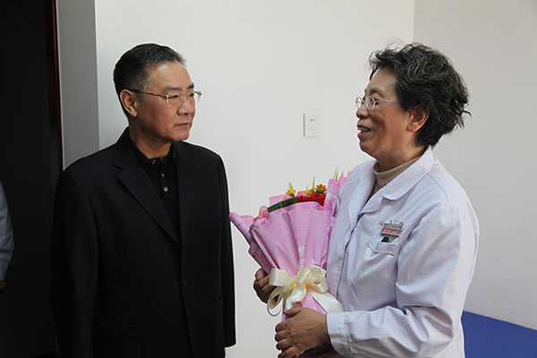 进入二层特需门诊,领导们一起看望了皮肤科瞿幸、耳鼻喉科梁淑满和正在出门诊的王耀献院长,并送上鲜花和新春的祝福。马建中局长说:“虽然已是年根儿,但患者仍然很多,都想在年前抓点药回家。专家们越是年底越不敢停诊,确保患者们可以踏踏实实过年。”专家们表示,马上就到春节,一定让患者满意,过好年。最后,国家中医药管理局领导请东直门医院领导转达对东直门医院全体职工的祝福,祝大家新春快乐!