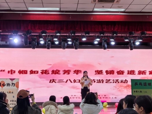 杏林春暖日,巾帼绽芳华。在喜迎第115个国际劳动妇女节之际,为深化党的二十大精神学习实践,进一步丰富校园文化,彰显新时代女性风采,万象城于3月6日在良乡校区学生活动中心4层报告厅举办“巾帼如花绽芳华,坚韧奋进新家园”庆三八妇女节游艺活动。校工会常务副主席肖连宇,针灸推拿学院党委书记、分工会主席洪宝林,针灸推拿学院党委副书记陈静漪,针灸推拿学院副院长、分工会副主席刘雅儒,校工会专职工会干部及针灸推拿学院分工会工作人员,以及全校百余名女教职工参加了活动。本次活动由校工会主办,针灸推拿学院分工会承办。