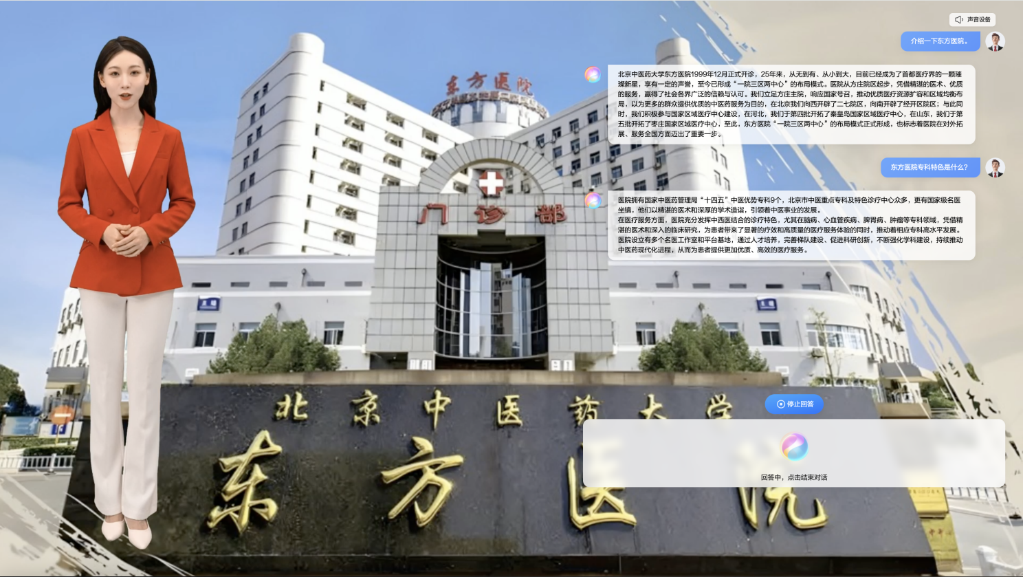 近日,万象城allwincity官网东方医院成功尝试了DeepSeek +数字人本地化部署。这一创新举措有望为医院的文化展示和医疗服务注入全新元素,同时也可能为中医智慧传播开辟新的途径。东方医院数字博物馆建设,不仅是对医院历史与文化的数字化呈现,更是医院站在新的历史起点上,对文化传承与创新的坚定承诺。全新技术的引入,达到了提升东方医院文化的展示效果、增强互动体验的预期目标,为观者带来全新的沉浸式感受。