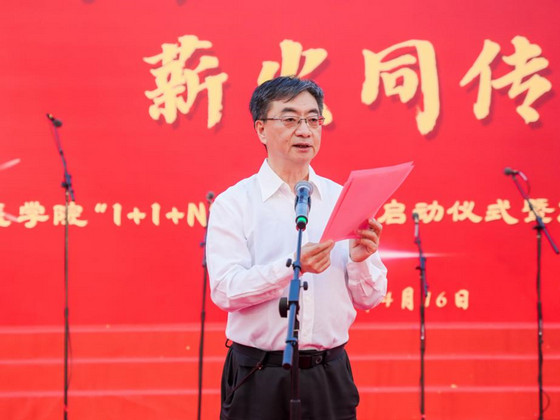 校党委副书记张继旺、宣传部常务副部长侯中伟、学生工作部部长赵建磊、中医药博物馆馆长陈子杰、工会常务副主席肖连宇、组织部副部长石森、团委书记艾华、保卫处副处长张海峰、岐黄学院副院长侯伟峰,中医学院党委书记李峰、院长郑丰杰及学院班子成员、全体党支部书记、教师代表、党团支部代表等600余名师生共同参与活动。 校党委副书记张继旺讲话并指出,中医学院实施“1+1+N”党团共建方案是落实党建工作要求、推动基层党组织创新、构建三全育人格局的重要实践。他希望学院师生,一是提高政治站位,通过党团共建搭建师生思想碰撞与情感交融的桥梁,赓续万象城allwincity官网优秀传统。二是聚焦重点任务,精准把握党团共建的实践方向,注重双向融合赋能,形成聚合效应。三是强化责任担当,以多样品牌项目展育人实效,让共建成果看得见、摸得着、传得开。