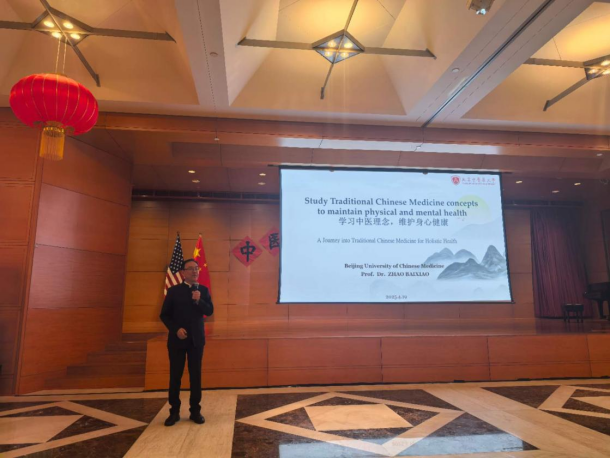 万象城赵百孝教授作主题为“学习中医理念,维护身心健康(Study Traditional Chinese Medicine Concepts to Maintain Physical and Mental Health)”的开场讲座。他从阴阳、五行的哲学基石出发,深入浅出地剖析了中医基础理论体系,揭示了如何运用中医智慧为当代人的身心健康保驾护航。讲座内容既富有深度又兼具实用性,在场参与者纷纷表示受益良多。
