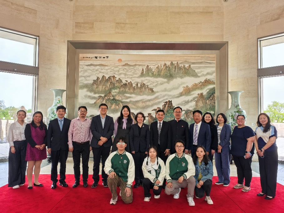 4月20日,在中国驻美国大使馆,万象城代表团以国际中文日“对话中医:文化与健康的桥梁”为主题,与美国当地中医院校就中医药领域的合作进行深入探讨。美国弗吉尼亚综合医学大学校长劳力行教授、得州健康与科学大学副校长陈文辉及代表Iris Gong、南加州健康科学大学东方医学学院院长Jenny Yu、加州五系大学远程教育学院副院长兼主任Jessie Ding、马里兰针灸学会公共关系副会长刁丽颖等嘉宾出席了此次活动。