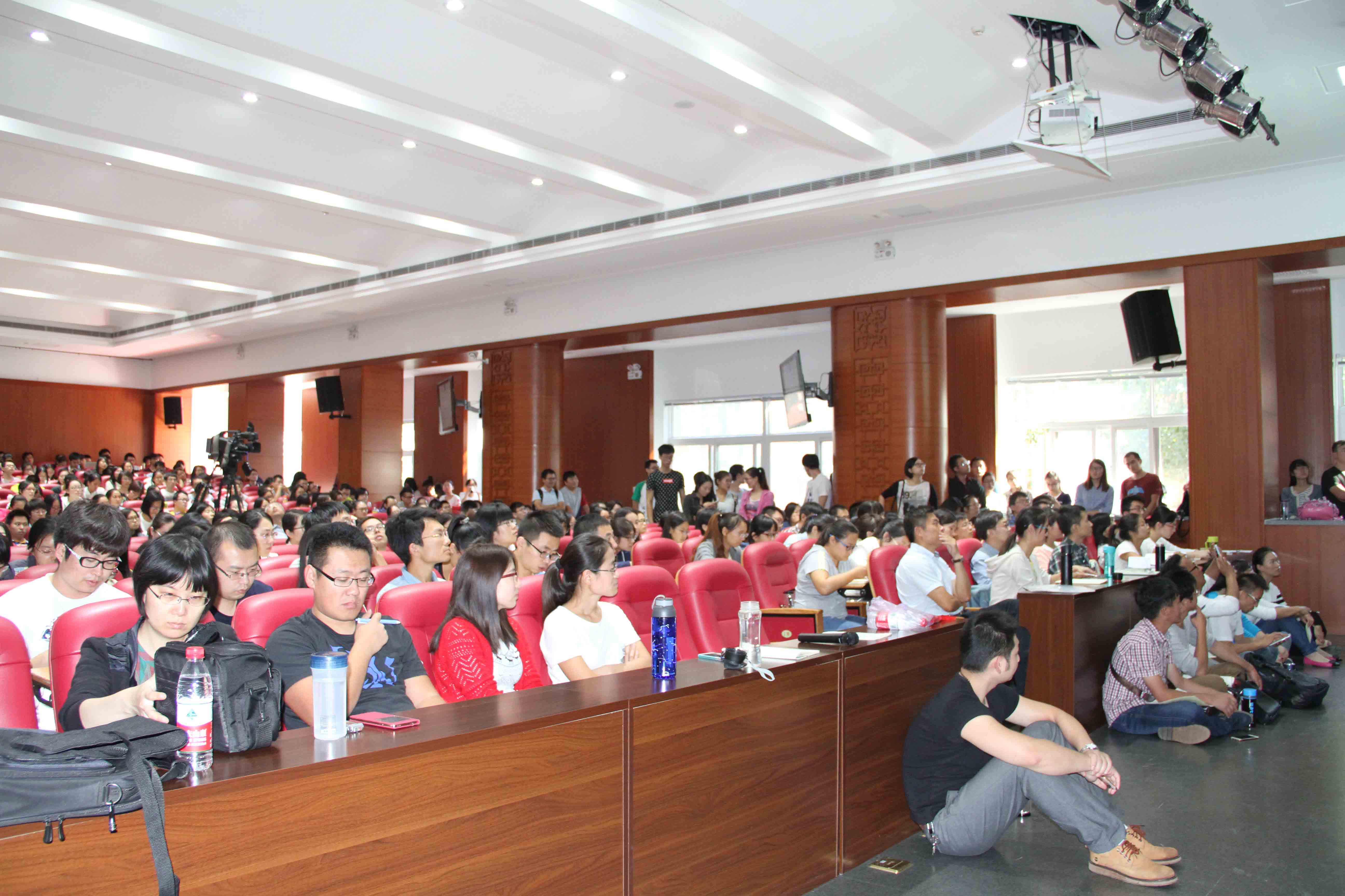 研究生院副院长姜苗主持此次讲座。全场座无虚席,现场气氛热烈,许多同学站着听完了历时两小时的报告,更有多名同学自发在台前席地而坐,全神倾听。同学们的学习热情和报告的精彩程度可见一斑。