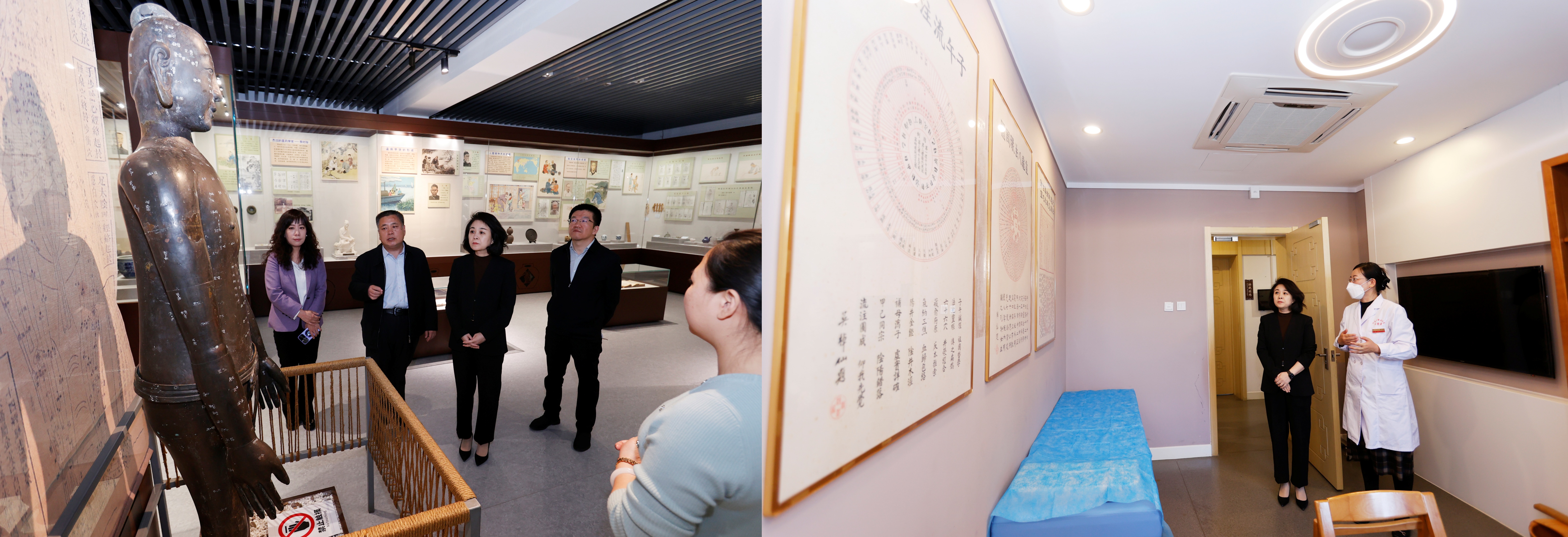 座谈会后,调研组一行参观了学校中医药博物馆,在中医药体验馆沉浸式体验了中医诊疗项目,近距离感受中医药文化独特魅力。
