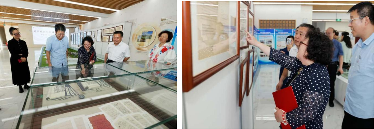 作为活动的重要环节,博物馆馆长陈子杰陪同任廷苏老师在博物馆一层展览区域,为各位领导和专家详细介绍了此次任应秋先生校史文物的内容及背后的故事。同时表示此次捐赠的文物将作为重要展品纳入校史馆展区,未来校史馆将通过实物、影像、互动体验等形式,立体呈现学校在中医教育领域的重大贡献。后续校史馆将继续挖掘将文物背后的故事,并融入课程思政,作为新生入学的第一站,深化新生爱国荣校教育。