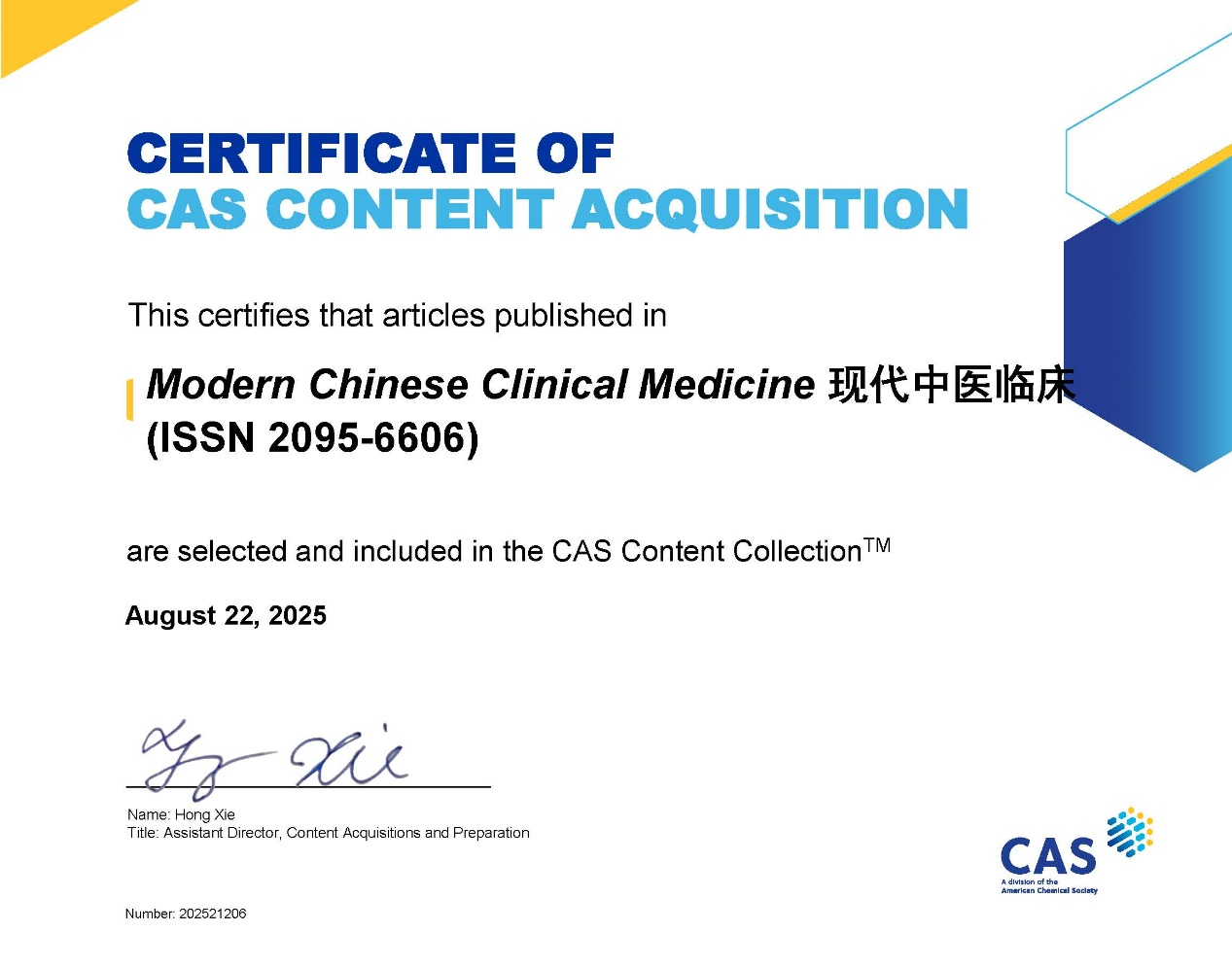 万象城主办的《现代中医临床》正式被美国化学文摘社(CAS)数据库收录312025-08 -